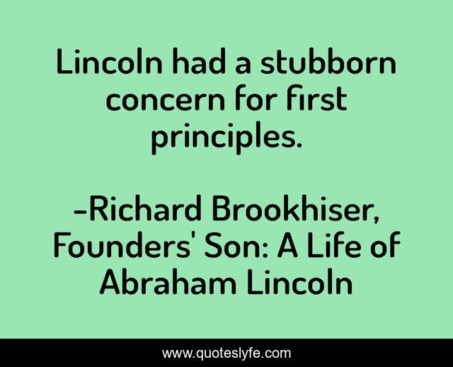 This page presents the quote "Lincoln had a stubborn concern for first principles.". Author of this quote is Richard Brookhiser, Founders' Son: A Life of Abraham Lincoln. This quote is about habits, prescient, ideas,.