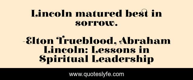 "Elton Trueblood, Abraham Lincoln: Lessons in Spiritual Leadership Quotes." Quoteslyfe.com, 2025. Mon. 08 Dec. 2025. <https://www.quoteslyfe.com/quote/Lincoln-matured-best-in-sorrow-123663>.