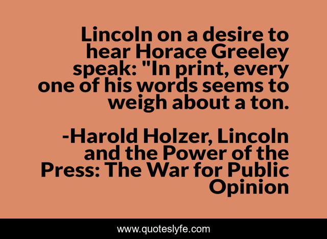 "Harold Holzer, Lincoln and the Power of the Press: The War for Public Opinion Quotes." Quoteslyfe.com, 2025. Tue. 09 Dec. 2025. <https://www.quoteslyfe.com/quote/Lincoln-on-a-desire-to-hear-Horace-48092>.