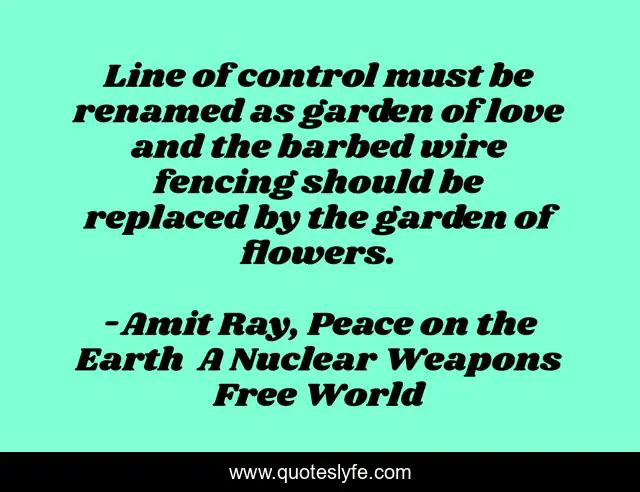 "Amit Ray, Peace on the Earth A Nuclear Weapons Free World Quotes." Quoteslyfe.com, 2025. Fri. 05 Dec. 2025. <https://www.quoteslyfe.com/quote/Line-of-control-must-be-renamed-as-73272>.