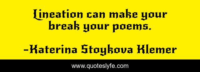 This page presents the quote "Lineation can make your break your poems.". Author of this quote is Katerina Stoykova Klemer. This quote is about craft, creativity, poetry, writing,.