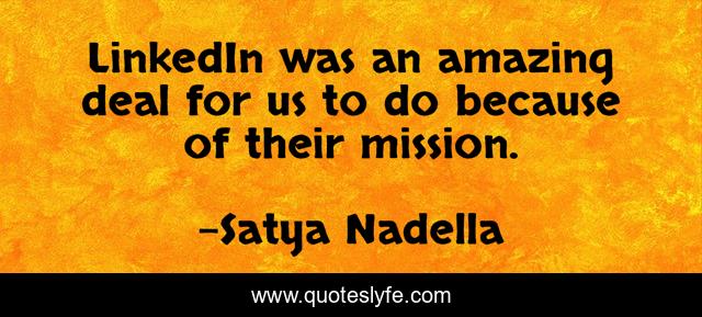 This page presents the quote "LinkedIn was an amazing deal for us to do because of their mission.". Author of this quote is Satya Nadella. This quote is about because, mission, us,.