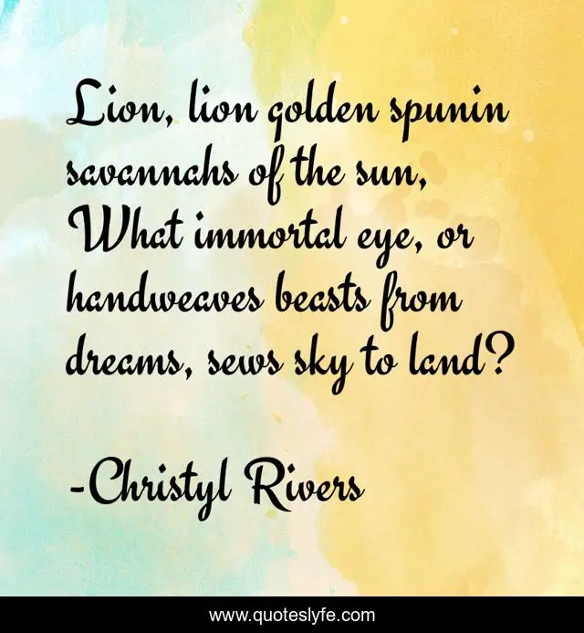 "Christyl Rivers Quotes." Quoteslyfe.com, 2025. Mon. 08 Dec. 2025. <https://www.quoteslyfe.com/quote/Lion-lion-golden-spunin-savannahs-of-the-72960>.