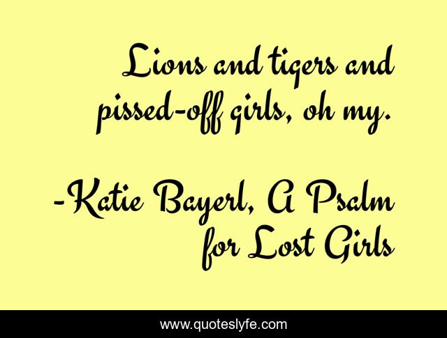 "Katie Bayerl, A Psalm for Lost Girls Quotes." Quoteslyfe.com, 2025. Sun. 07 Dec. 2025. <https://www.quoteslyfe.com/quote/Lions-and-tigers-and-pissed-off-girls-225713>.