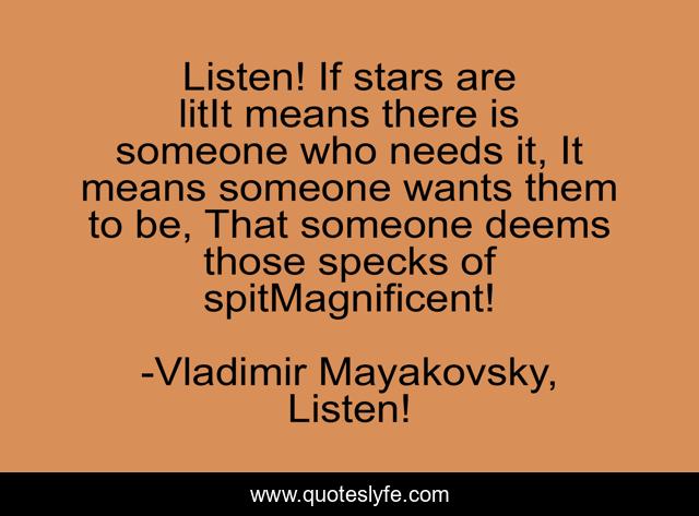 "Vladimir Mayakovsky, Listen! Quotes." Quoteslyfe.com, 2025. Mon. 08 Dec. 2025. <https://www.quoteslyfe.com/quote/Listen-If-stars-are-litIt-means-there-24509>.