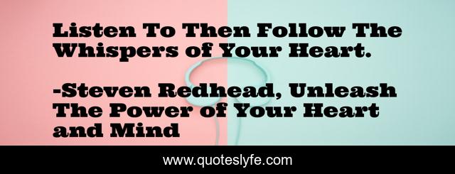 "Steven Redhead, Unleash The Power of Your Heart and Mind Quotes." Quoteslyfe.com, 2025. Fri. 05 Dec. 2025. <https://www.quoteslyfe.com/quote/Listen-To-Then-Follow-The-Whispers-of-147299>.
