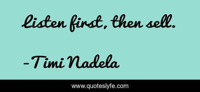 "Timi Nadela Quotes." Quoteslyfe.com, 2025. Fri. 05 Dec. 2025. <https://www.quoteslyfe.com/quote/Listen-first-then-sell-252142>.
