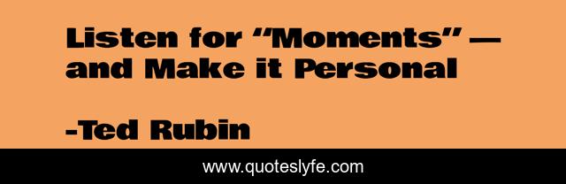 This page presents the quote "Listen for “Moments” — and Make it Personal". Author of this quote is Ted Rubin. This quote is about marketing, friendship, business,.