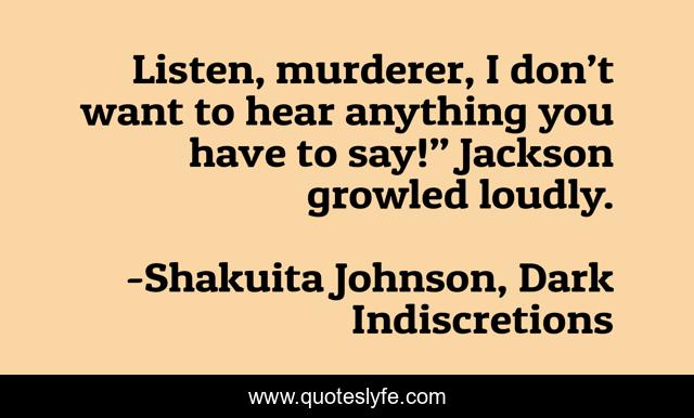 This page presents the quote "Listen, murderer, I don’t want to hear anything you have to say!” Jackson growled loudly.". Author of this quote is Shakuita Johnson, Dark Indiscretions. This quote is about vampires, werevolves,.