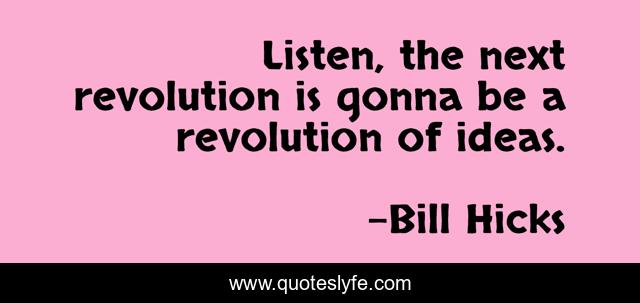 This page presents the quote "Listen, the next revolution is gonna be a revolution of ideas.". Author of this quote is Bill Hicks. This quote is about revolution, ideas,.
