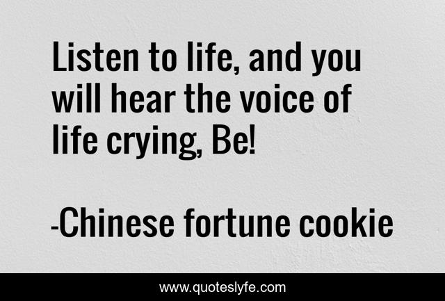 This page presents the quote "Listen to life, and you will hear the voice of life crying, Be!". Author of this quote is Chinese fortune cookie. This quote is about spiritual, writers,.