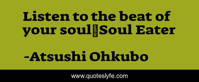This page presents the quote "Listen to the beat of your soul~Soul Eater". Author of this quote is Atsushi Ohkubo. This quote is about supernatural, anime, manga,.
