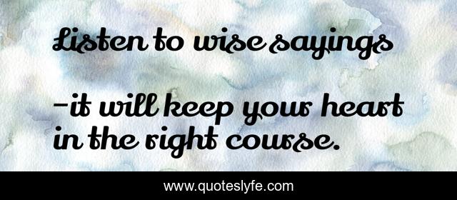 This page presents the quote "Listen to wise sayings". Author of this quote is it will keep your heart in the right course.. .