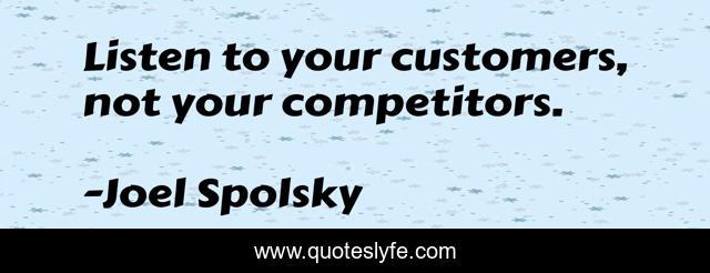 "Joel Spolsky Quotes." Quoteslyfe.com, 2025. Sat. 06 Dec. 2025. <https://www.quoteslyfe.com/quote/Listen-to-your-customers-not-your-competitors-128178>.