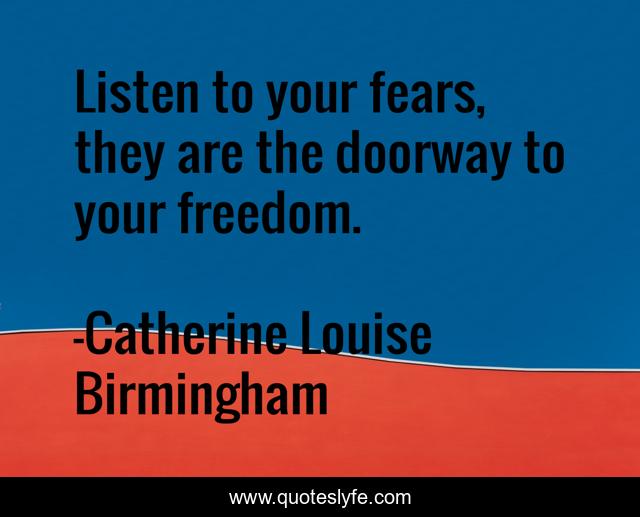 This page presents the quote "Listen to your fears, they are the doorway to your freedom.". Author of this quote is Catherine Louise Birmingham. This quote is about freedom, fear,.