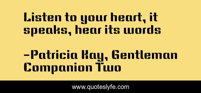 "Patricia Kay, Gentleman Companion Two Quotes." Quoteslyfe.com, 2025. Mon. 08 Dec. 2025. <https://www.quoteslyfe.com/quote/Listen-to-your-heart-it-speaks-hear-80703>.