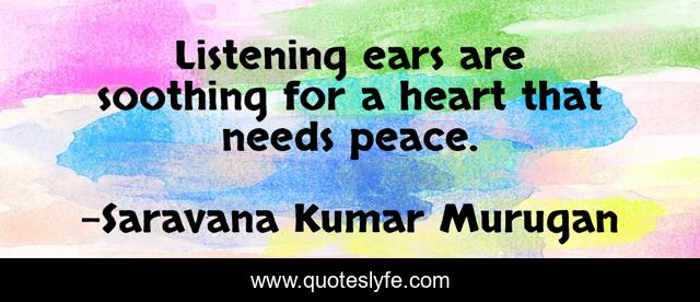 This page presents the quote "Listening ears are soothing for a heart that needs peace.". Author of this quote is Saravana Kumar Murugan. This quote is about peace-of-mind, heart,.