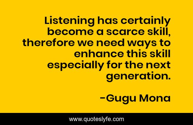 "Gugu Mona Quotes." Quoteslyfe.com, 2025. Sat. 06 Dec. 2025. <https://www.quoteslyfe.com/quote/Listening-has-certainly-become-a-scarce-skill-245248>.