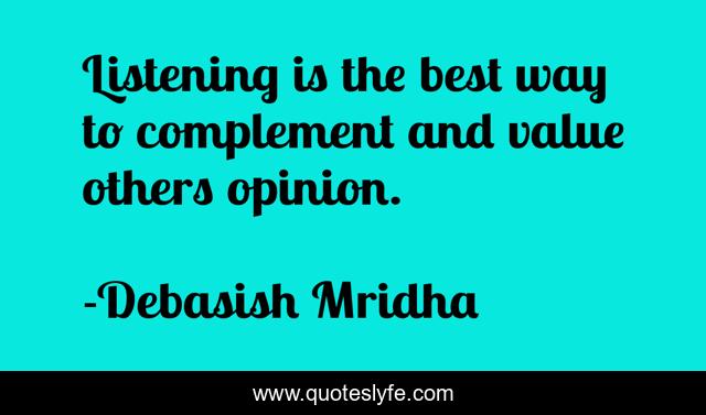 This page presents the quote "Listening is the best way to complement and value others opinion.". Author of this quote is Debasish Mridha. This quote is about inspirational, philosophy, debasish-mridha, quotes, listening, enthusiasm, debasish-mridha-m-d,.