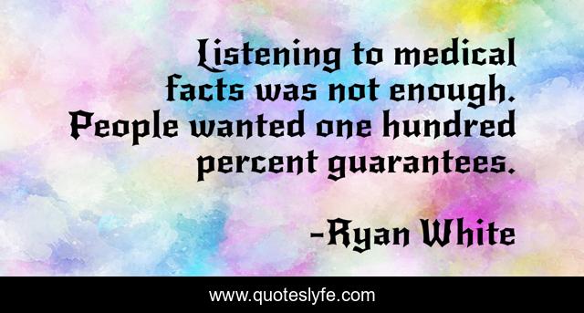 This page presents the quote "Listening to medical facts was not enough. People wanted one hundred percent guarantees.". Author of this quote is Ryan White. This quote is about facts, listening, people,.