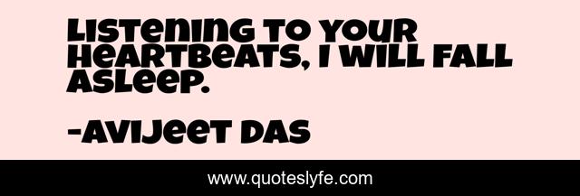 This page presents the quote "Listening to your heartbeats, I will fall asleep.". Author of this quote is Avijeet Das. This quote is about listening-to-heartbeats, love, heartbeats, asleep, love-poem, listening, affection,.