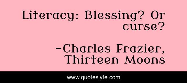 This page presents the quote "Literacy: Blessing? Or curse?". Author of this quote is Charles Frazier, Thirteen Moons. This quote is about reading-books, literacy, books, reading, writing,.