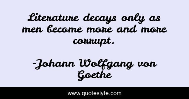 This page presents the quote "Literature decays only as men become more and more corrupt.". Author of this quote is Johann Wolfgang von Goethe. This quote is about literature, art, art-and-life,.