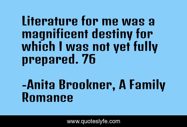 "Anita Brookner, A Family Romance Quotes." Quoteslyfe.com, 2025. Mon. 08 Dec. 2025. <https://www.quoteslyfe.com/quote/Literature-for-me-was-a-magnificent-destiny-66728>.