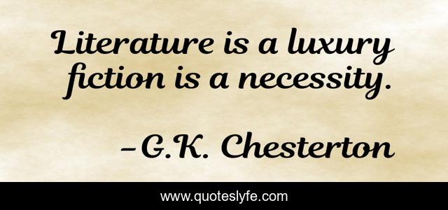 "G.K. Chesterton Quotes." Quoteslyfe.com, 2025. Sat. 06 Dec. 2025. <https://www.quoteslyfe.com/quote/Literature-is-a-luxury-fiction-is-a-42662>.