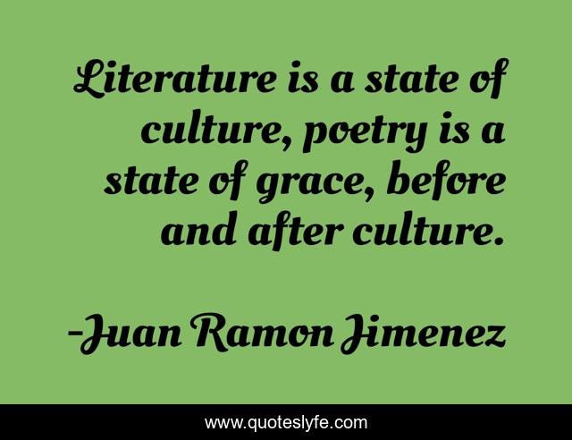 This page presents the quote "Literature is a state of culture, poetry is a state of grace, before and after culture.". Author of this quote is Juan Ramon Jimenez. This quote is about culture, literature, grace,.