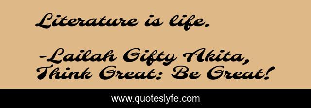 "Lailah Gifty Akita, Think Great: Be Great! Quotes." Quoteslyfe.com, 2026. Wed. 14 Jan. 2026. <https://www.quoteslyfe.com/quote/Literature-is-life-111969>.