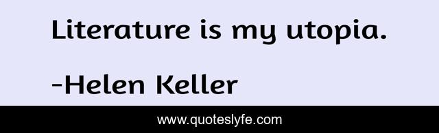 This page presents the quote "Literature is my utopia.". Author of this quote is Helen Keller. .