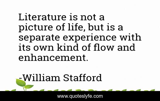 This page presents the quote "Literature is not a picture of life, but is a separate experience with its own kind of flow and enhancement.". Author of this quote is William Stafford. .