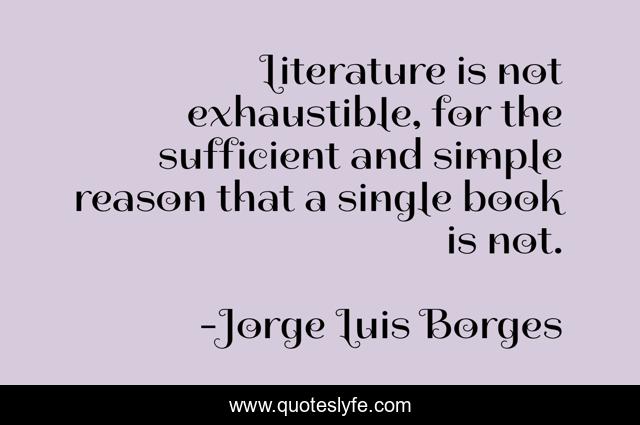 This page presents the quote "Literature is not exhaustible, for the sufficient and simple reason that a single book is not.". Author of this quote is Jorge Luis Borges. This quote is about literature, infinity,.