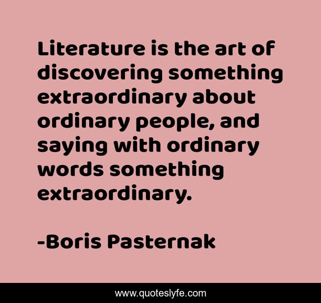This page presents the quote "Literature is the art of discovering something extraordinary about ordinary people, and saying with ordinary words something extraordinary.". Author of this quote is Boris Pasternak. This quote is about books, literature, reading, words,.