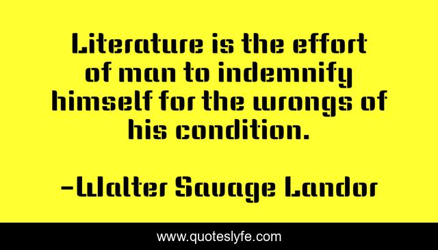 This page presents the quote "Literature is the effort of man to indemnify himself for the wrongs of his condition.". Author of this quote is Walter Savage Landor. .