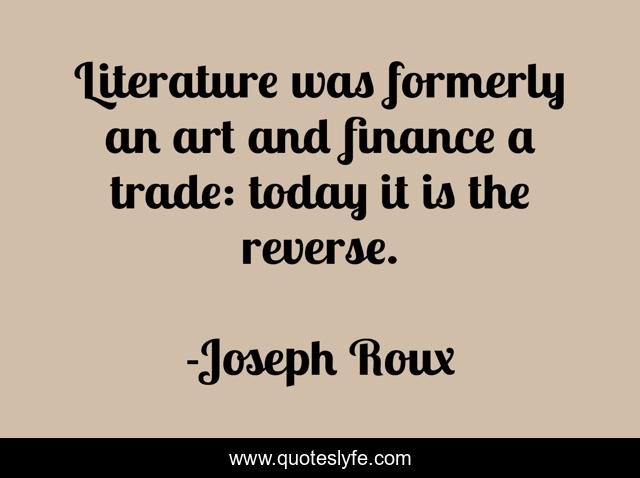 This page presents the quote "Literature was formerly an art and finance a trade: today it is the reverse.". Author of this quote is Joseph Roux. .