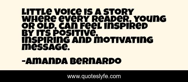This page presents the quote "Little Voice is a story where every reader, young or old, can feel inspired by its positive, inspiring and motivating message.". Author of this quote is Amanda Bernardo. This quote is about little-voice, inspiring, confidence, motivation, positive,.