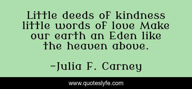 This page presents the quote "Little deeds of kindness little words of love Make our earth an Eden like the heaven above.". Author of this quote is Julia F. Carney. .