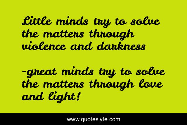 This page presents the quote "Little minds try to solve the matters through violence and darkness". Author of this quote is great minds try to solve the matters through love and light!. .