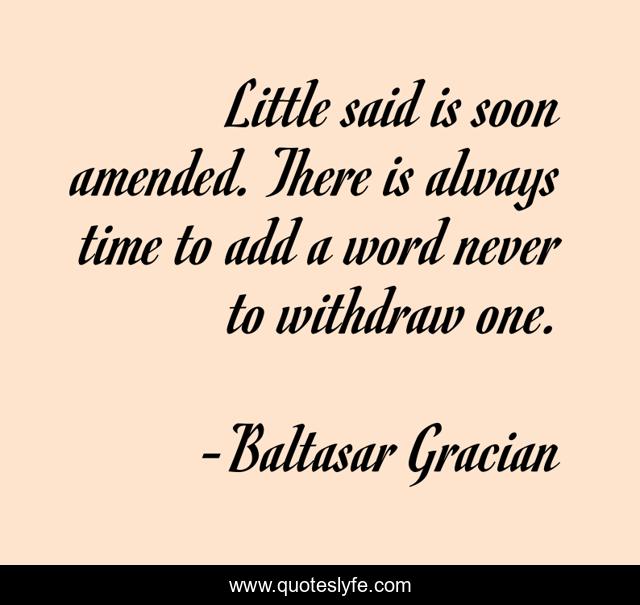 This page presents the quote "Little said is soon amended. There is always time to add a word never to withdraw one.". Author of this quote is Baltasar Gracian. This quote is about speakers, speeches,.
