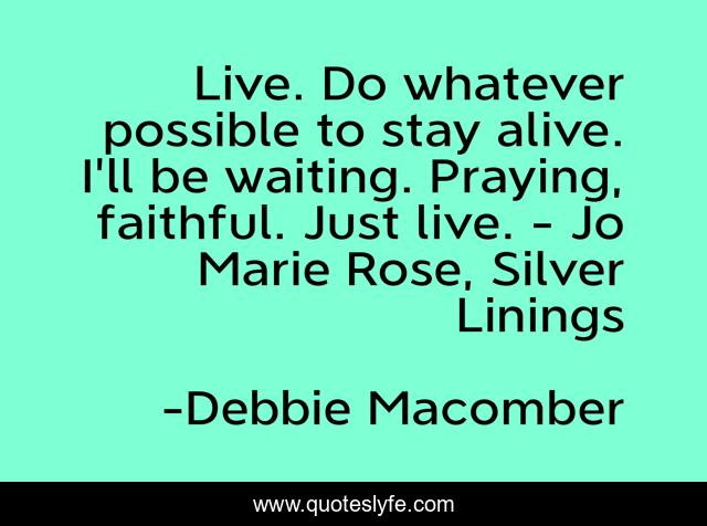Live. Do whatever possible to stay alive. I'll be waiting. Praying, faithful. Just live. - Jo Marie Rose, Silver Linings