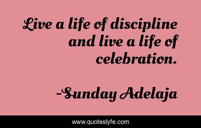 This page presents the quote "Live a life of discipline and live a life of celebration.". Author of this quote is Sunday Adelaja. This quote is about discipline, life, celebration,.
