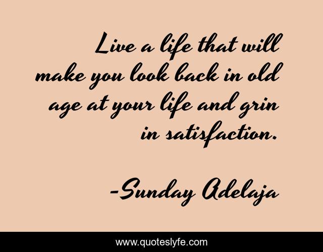 This page presents the quote "Live a life that will make you look back in old age at your life and grin in satisfaction.". Author of this quote is Sunday Adelaja. This quote is about life, old, look, make, satisfaction, live, age,.