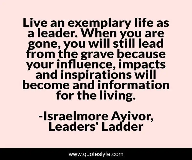 "Israelmore Ayivor, Leaders' Ladder Quotes." Quoteslyfe.com, 2025. Tue. 09 Dec. 2025. <https://www.quoteslyfe.com/quote/Live-an-exemplary-life-as-a-leader-64848>.