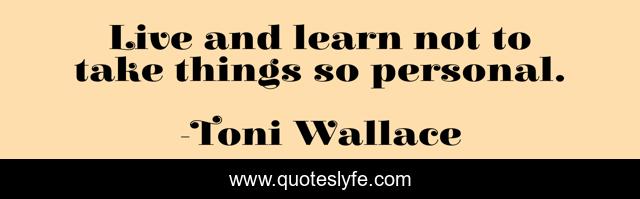 This page presents the quote "Live and learn not to take things so personal.". Author of this quote is Toni Wallace. This quote is about drama, dysfunctional, paranormal, relationship,.