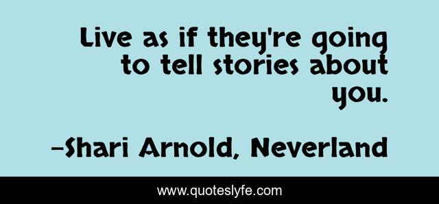 This page presents the quote "Live as if they're going to tell stories about you.". Author of this quote is Shari Arnold, Neverland. This quote is about life, stories,.