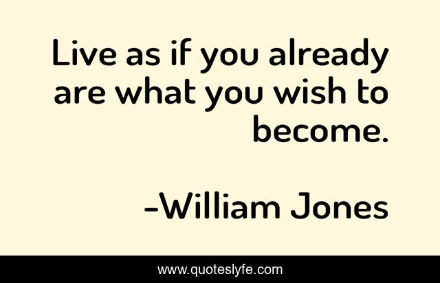 This page presents the quote "Live as if you already are what you wish to become.". Author of this quote is William Jones. .