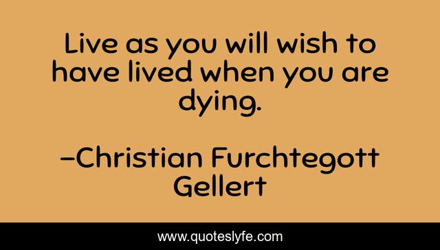 This page presents the quote "Live as you will wish to have lived when you are dying.". Author of this quote is Christian Furchtegott Gellert. .