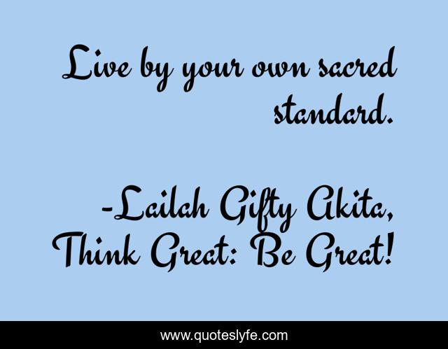 "Lailah Gifty Akita, Think Great: Be Great! Quotes." Quoteslyfe.com, 2025. Fri. 05 Dec. 2025. <https://www.quoteslyfe.com/quote/Live-by-your-own-sacred-standard-97178>.